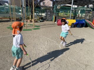 スポーツ教室や、好きな遊びの時間を使って縄跳びの練習を頑張っている子どもたち!