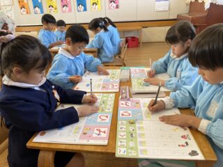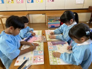 小学校に向けて、書くときの姿勢や、鉛筆の持ち方にも気をつけて練習しています!