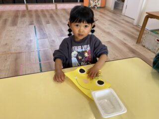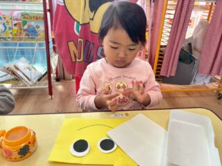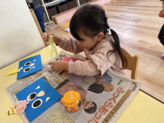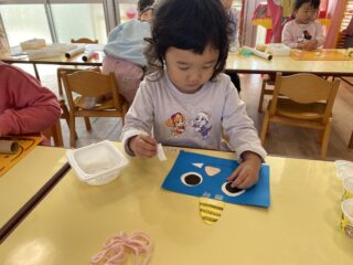目・鼻・口ものりを使って、ひとつひとつ丁寧に貼りつけました。