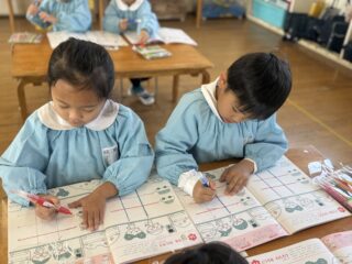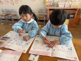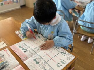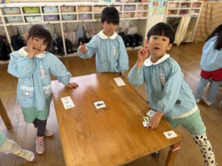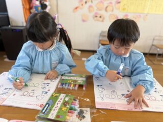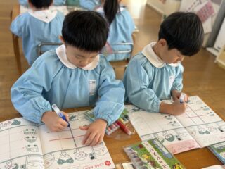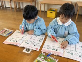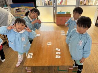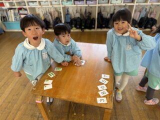 ぱんだぐみさんでは、少しずつ数字や文字に興味のあるお友だちが増え、好きな遊びの時間にお互いに教えあって、
