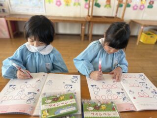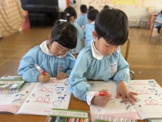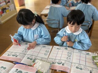 年長さんに向けて姿勢・ペンの持ち方・書き方に気をつけながら毎月頑張っているせんのワーク。