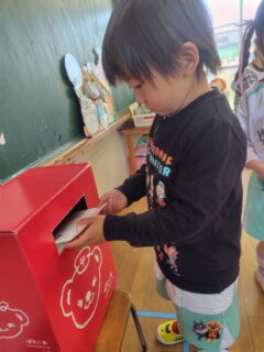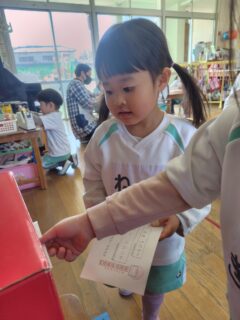 そして3日火曜日。スポーツ教室のあと郵便ごっこを楽しみました。