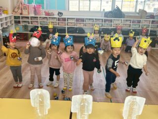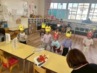 節分の豆まきごっこをしました。