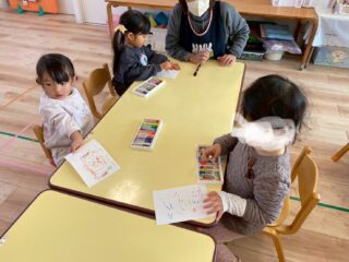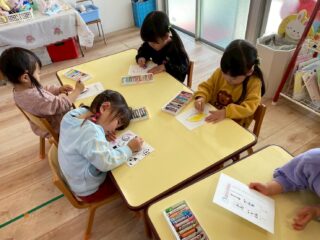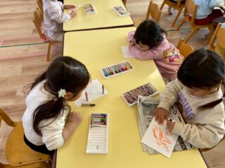 「だれに送ろうかな?」と考えながら、好きな絵をのびのびと描く子どもたち。