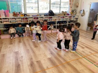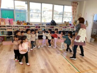 お友達を呼びながら、一人、また一人と増えていき、どんどん長くつながっていきます。
