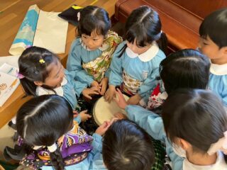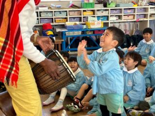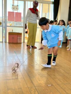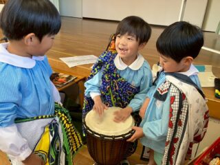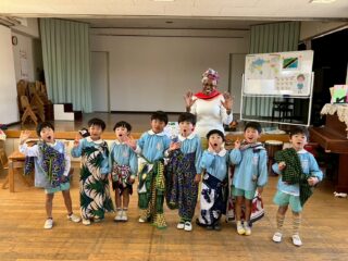 ぞうぐみさんは、民族衣装を着せてもらいました。