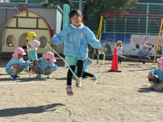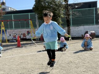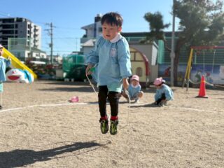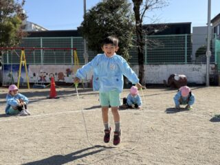 初めはゆっくり跳んでいたお友だちが連続跳びをできるようになったり、跳べる回数が日々増えていったり・・・