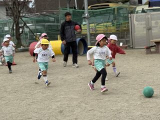 少し距離を置いて飛んできたボールを受け止める子、