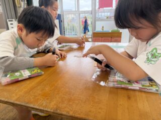 お名前は先生が鉛筆で書いたものを、1人1本もらえるネームペンを使ってなぞりましたよ!