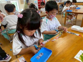 慎重にハサミを動かし、上手に切る姿がたくさん見られました!
