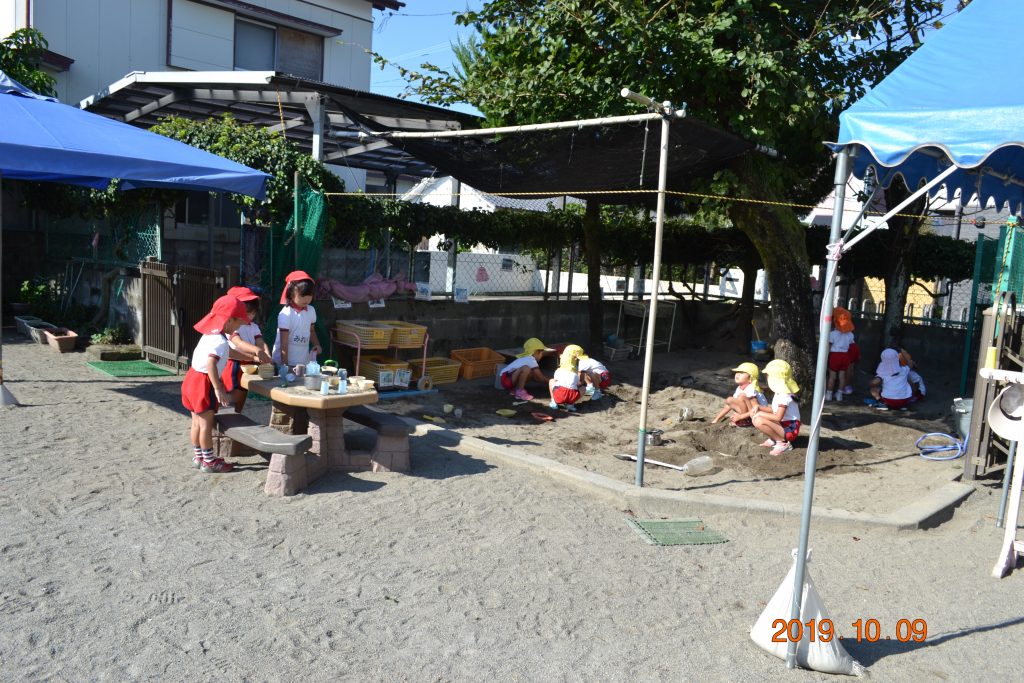 ひよこ組、こあら組は朝のおやつの時間です。他のお友達は全員登園までの時刻まで自由に元気一杯遊びます。