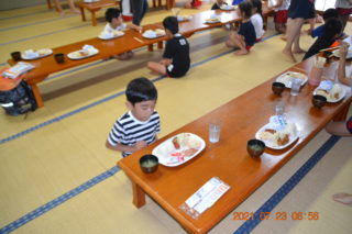 宿に戻り、朝食。早寝、早起き、朝ご飯は元気になるね!