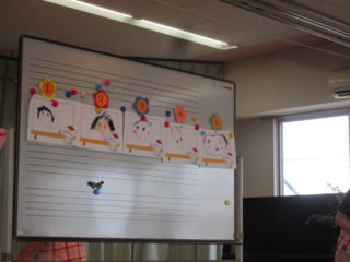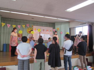 先生たちからはペープサートのプレゼント。みんな真剣に見ていました。