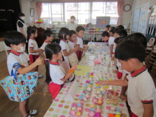 先日の参観日でお財布とお金を作り、今日までに少しずつ品物を作りました。