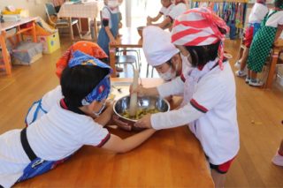 今日はぱんだぐみでも、お芋掘りのお芋を使って、お芋クッキングがありました。