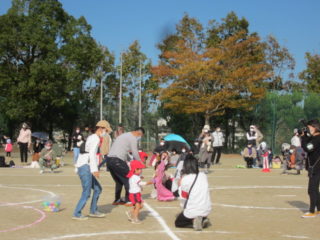 親子で走ったり、フープをくぐったり、ボールを投げたり楽しく競技が出来ました。