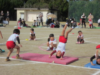最後はリレー。りす組、ぱんだ組、ぞう組それぞれ2チームに分かれて競走しました。